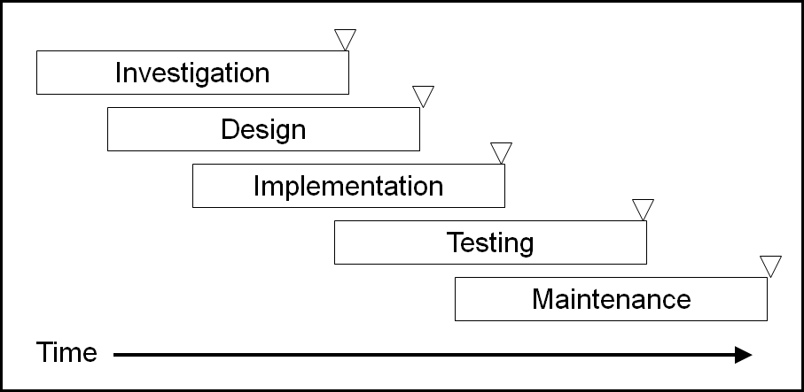 The software world used to run these one after another in what was called a "waterfall" where one phase would end and another would begin. The problem is that sometimes when you are imp le meting the software you find out you have to make a design change. This led to the "spiral" software model where everything was happening at once. This led to projects that no one could tell if they were progressing and many never finished. Rick Lesser and I then invented the "stair-step" model where each phase has a start and an end but they overlap so you can integrate learnings into the other phases.